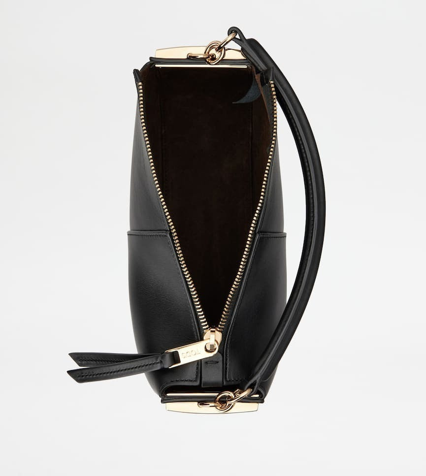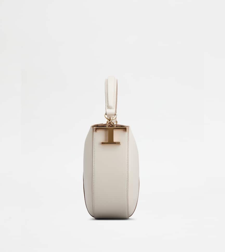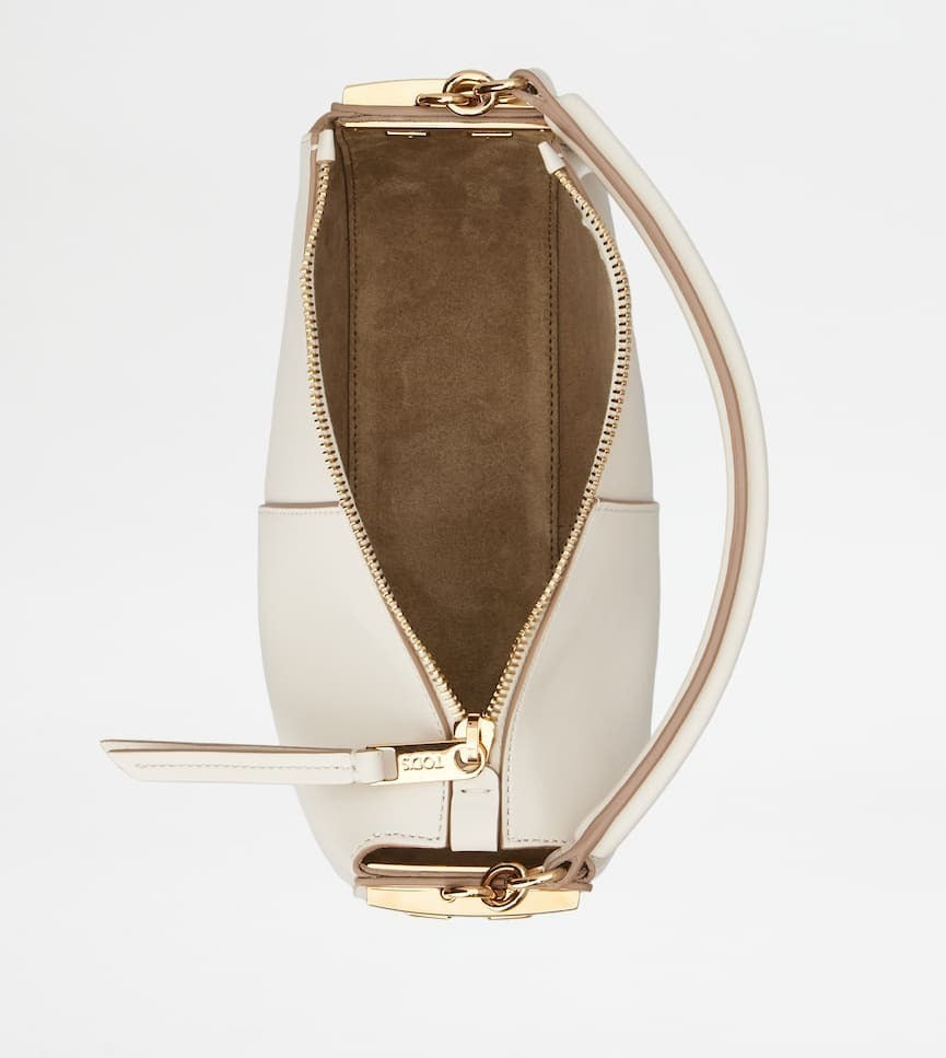 ジッパーで開閉し、すべての Tod's T Case モデルに共通する、象徴的な T Timeless メタル アクセサリーがサイドに付いています。