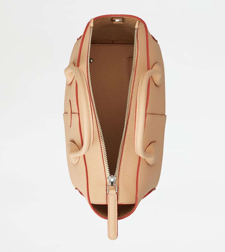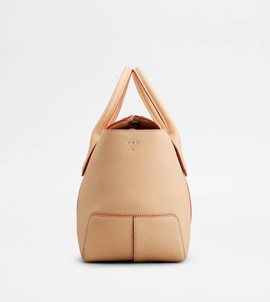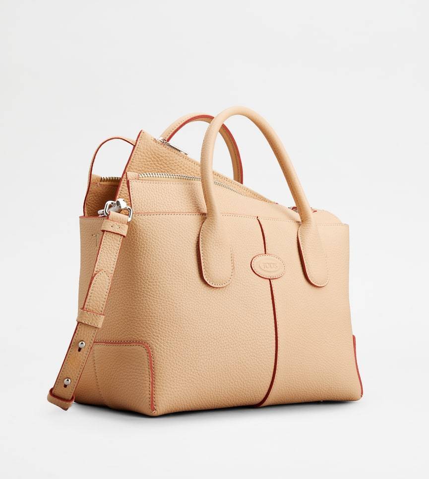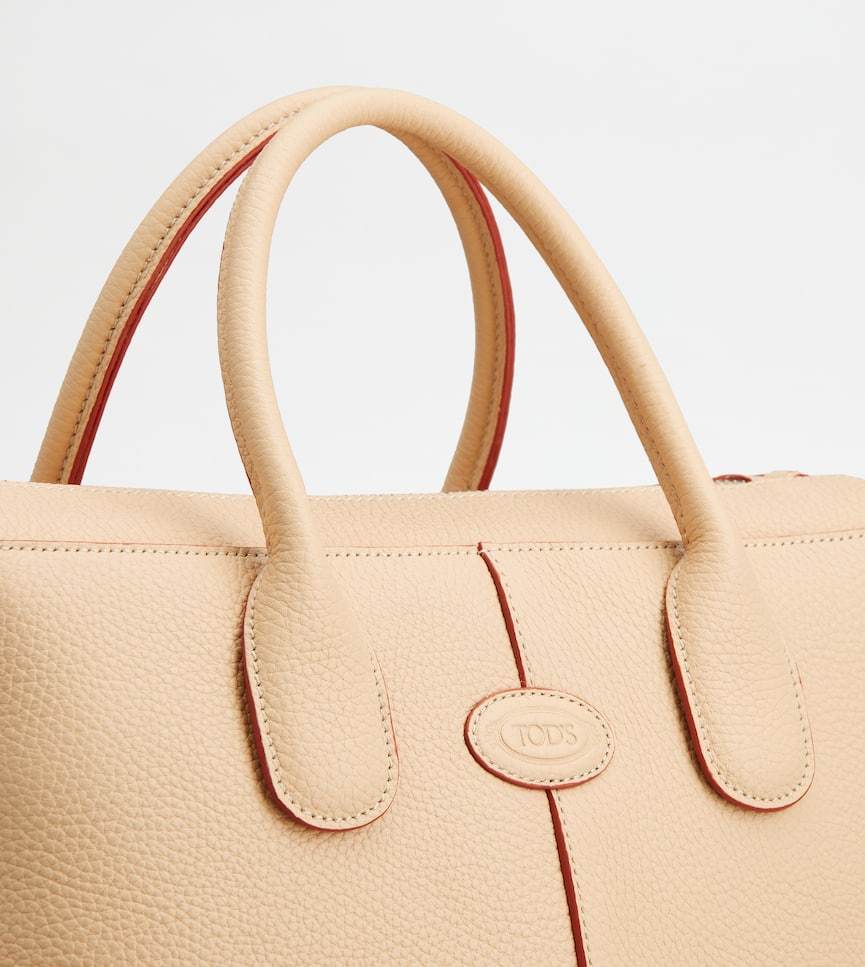 中央のリブと筒状のハンドルがこのエレガントなショッピング バッグの特徴で、前面にトッズのロゴがエンボス加工されています。内側にポーチと取り外し可能なショルダーストラップを装備し、上品な質感のレザーを使用しています。毎日の装いに気品とフェミニンさをプラス。